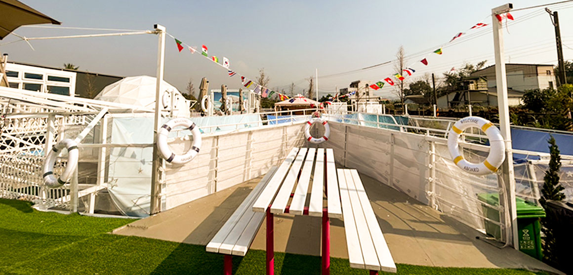 黃金藍海仙境位於台南與嘉義邊界距離嘉義才15分車程提供了多種露營選項,包括A區神殿帳、B區民宿villla和C區星空帳雪屋三種旅宿,讓您能夠依照自己的需求和喜好來選擇最合適的露營地點。每個露營區都有專屬的衛浴設施,並且在公共場所設有監視器保護露營者的安全。露營區內還提供了各種設施,如包區專屬KTV、麻將、包區屬式烤肉架、冷暖氣等,讓您在享受大自然的同時,也能有足夠的娛樂活動。